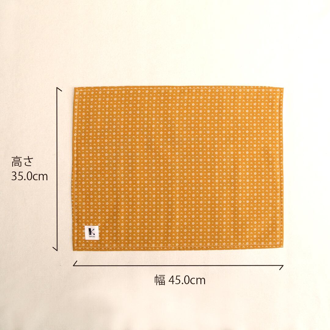 【撥水加工 ランチマット】からし色・月と星 / 滑り止め / H35×W45cm