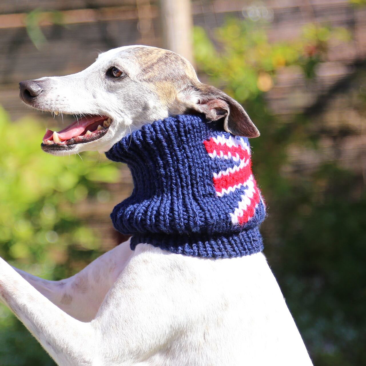 ウィペットサイズ【メリノウール】やわらか手編みスヌード ユニオンジャック(紺色) / 二重あったかタイプ