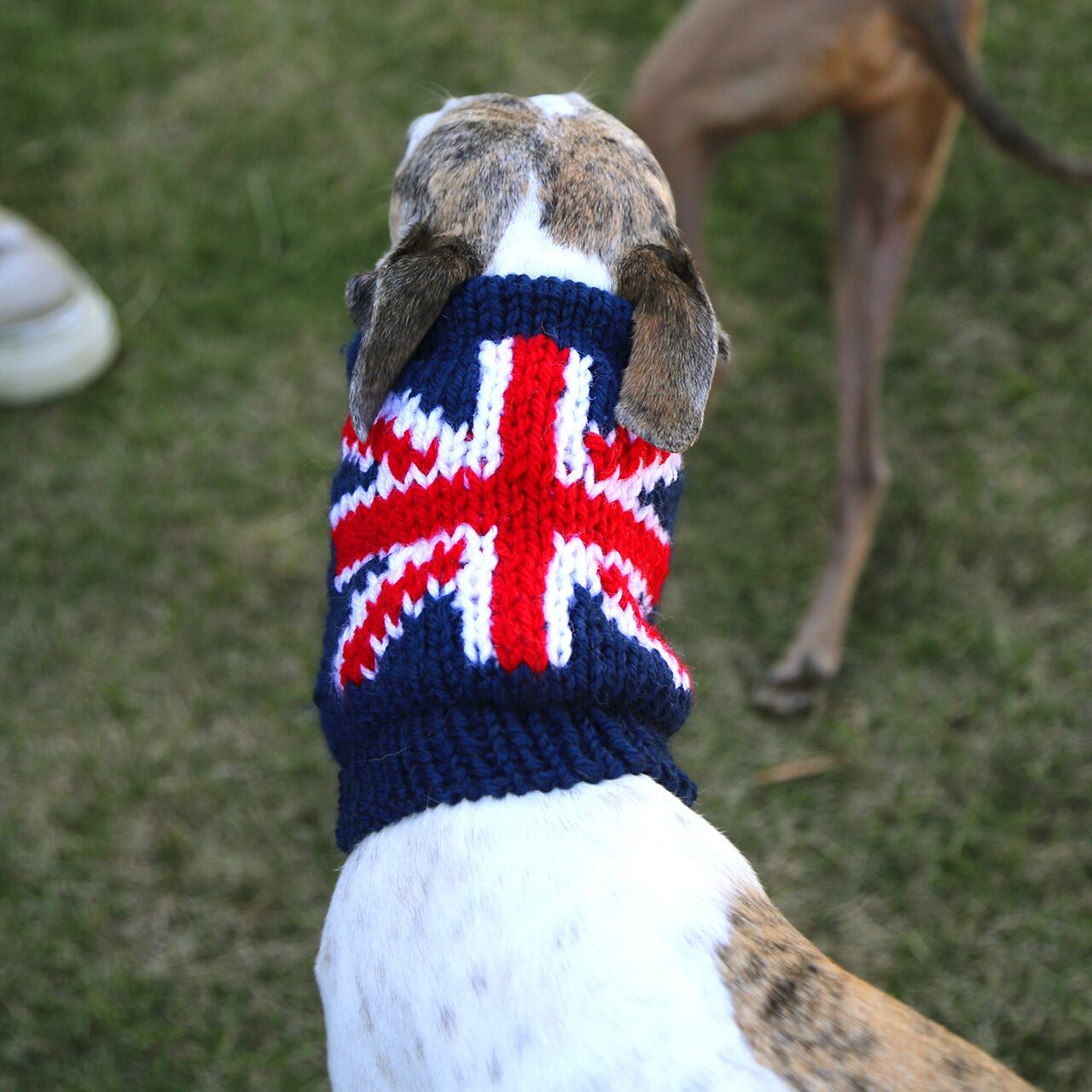 前面はワンちゃんの着け心地を考え伸縮性のある二目ゴム編みに、背面は柄が映えるメリヤス編みに。