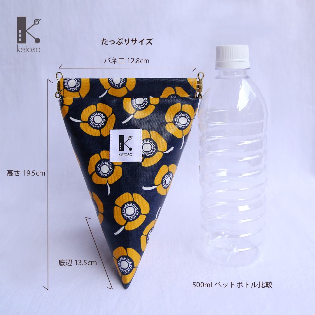 バネ口 12.8cm、高さ 19.5cm(バネ口含む)、底辺 13.5cm