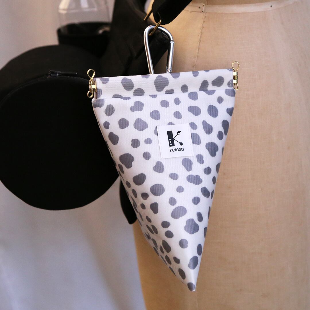 【ちょい長テトラ型】マナーポーチ / ダルメシアン【白×グレー】ラミネート加工 / 消臭 / カラビナ付き