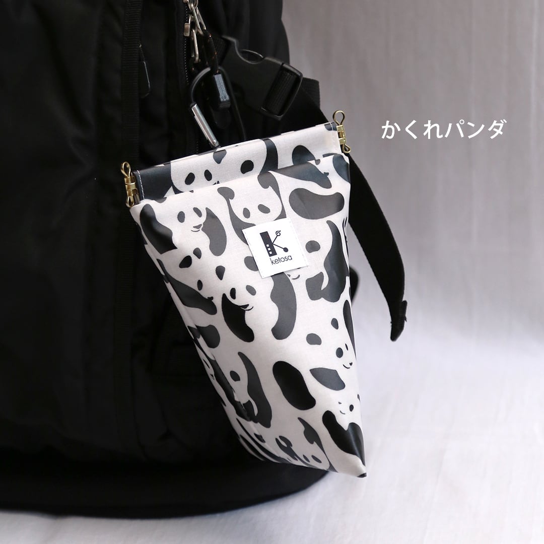【ちょい長テトラ型】マナーポーチ / かくれパンダver. (ラミネート加工) / 消臭 / カラビナ付き